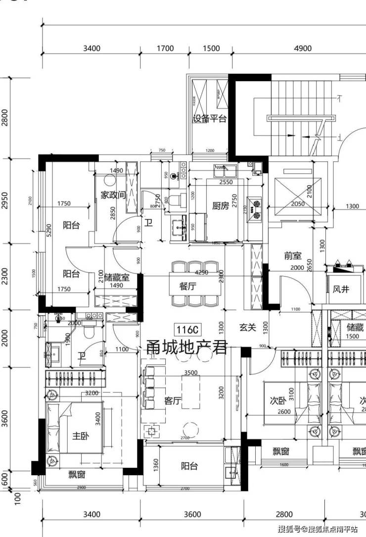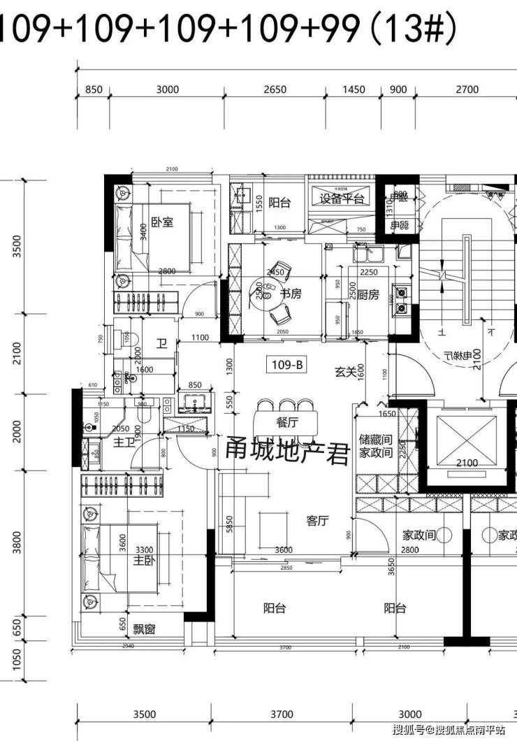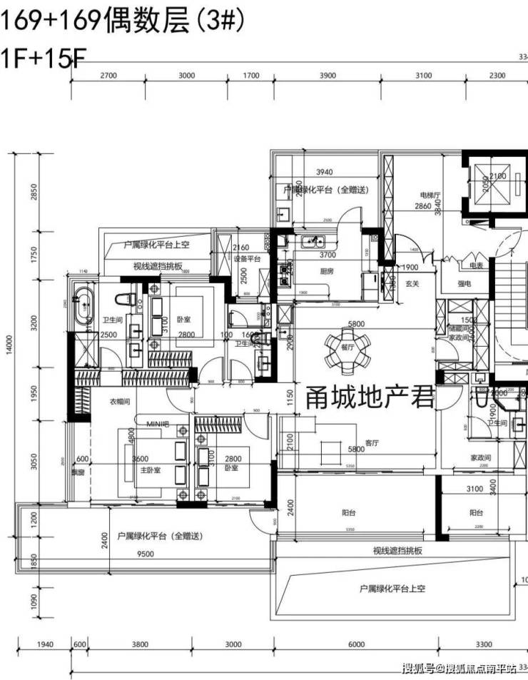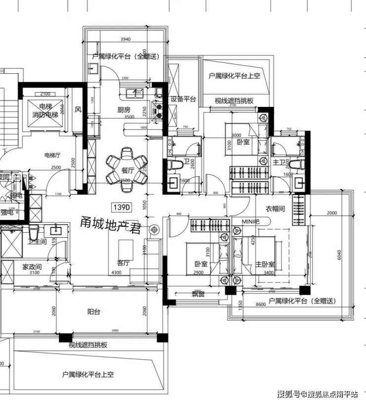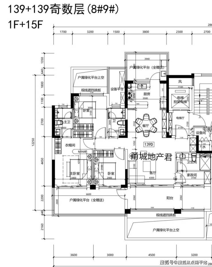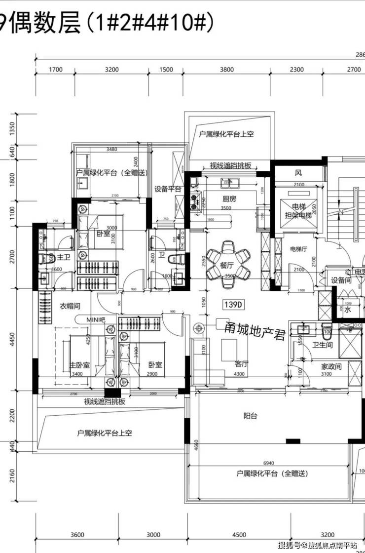 139/174平的第四代住宅整体户型一致,露台上有区别。