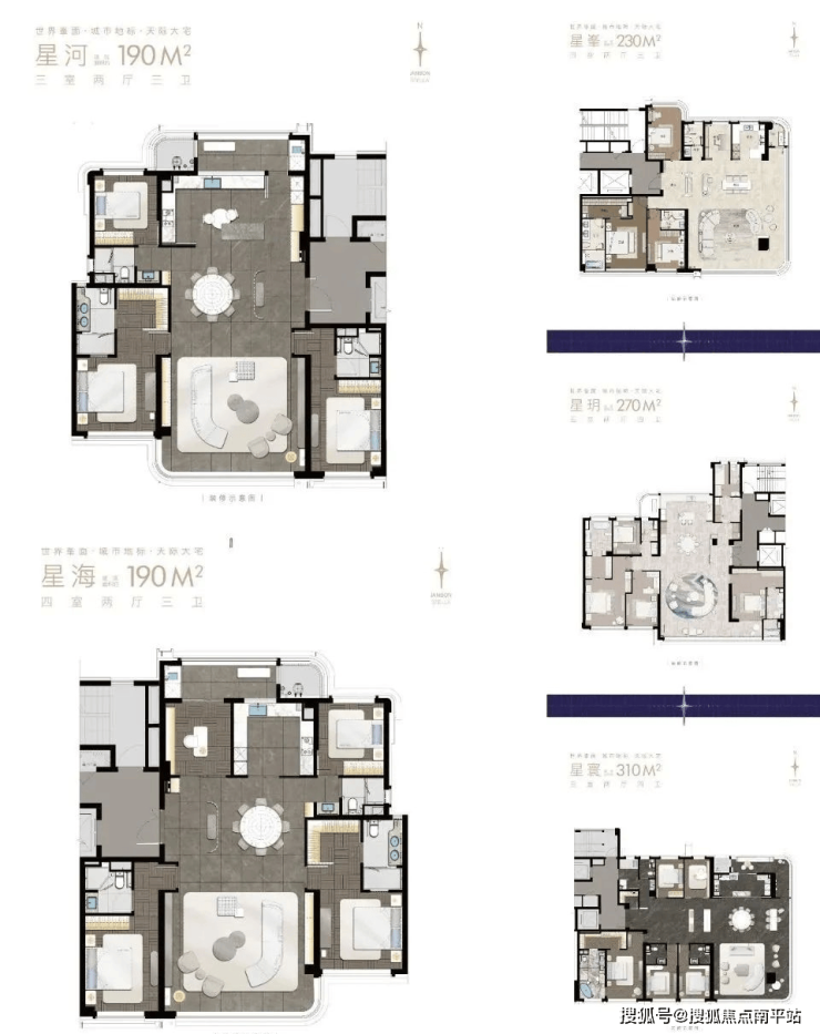【面积】:建面约190㎡/230㎡/270㎡/310㎡