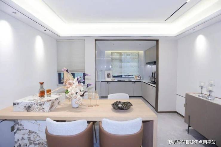 阳光厨房:L型流畅动线,洗切烹煮一气呵成,幸福食光游刃有余;餐厅与厨房独立又相联,构成一个日常、社交、休闲的空间,完美匹配对于社交场景的多样化想象。