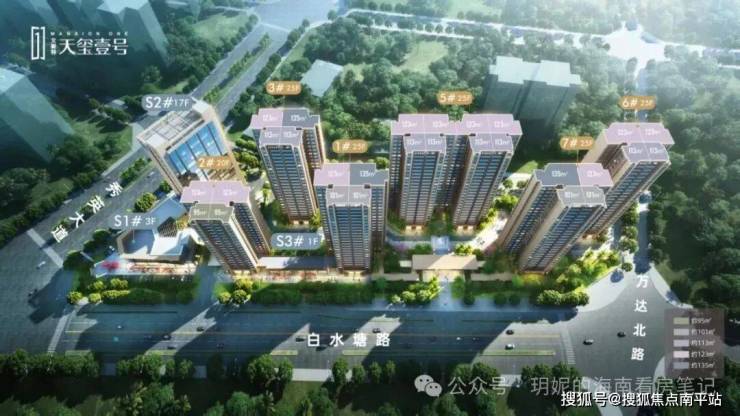 项目规划了6栋高层住宅+1栋品质酒店,提供约95-135㎡在内的四大户型,全面覆盖刚需及高端改善客群。