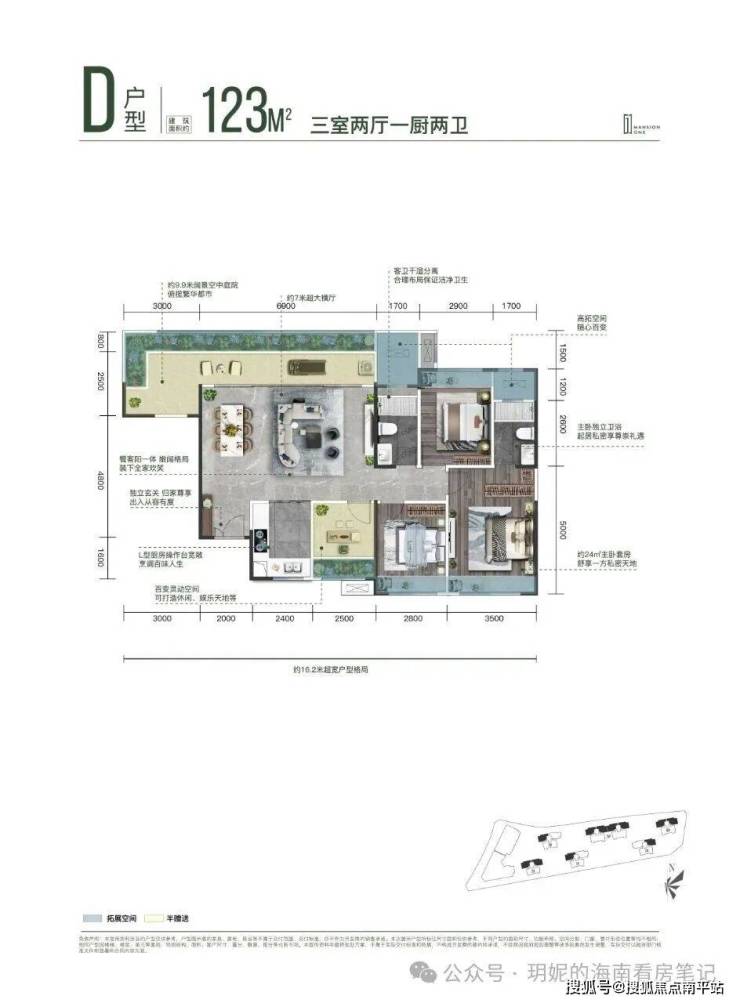 ◦ 顶奢户型,约10.3米横厅/庭院,可做6房