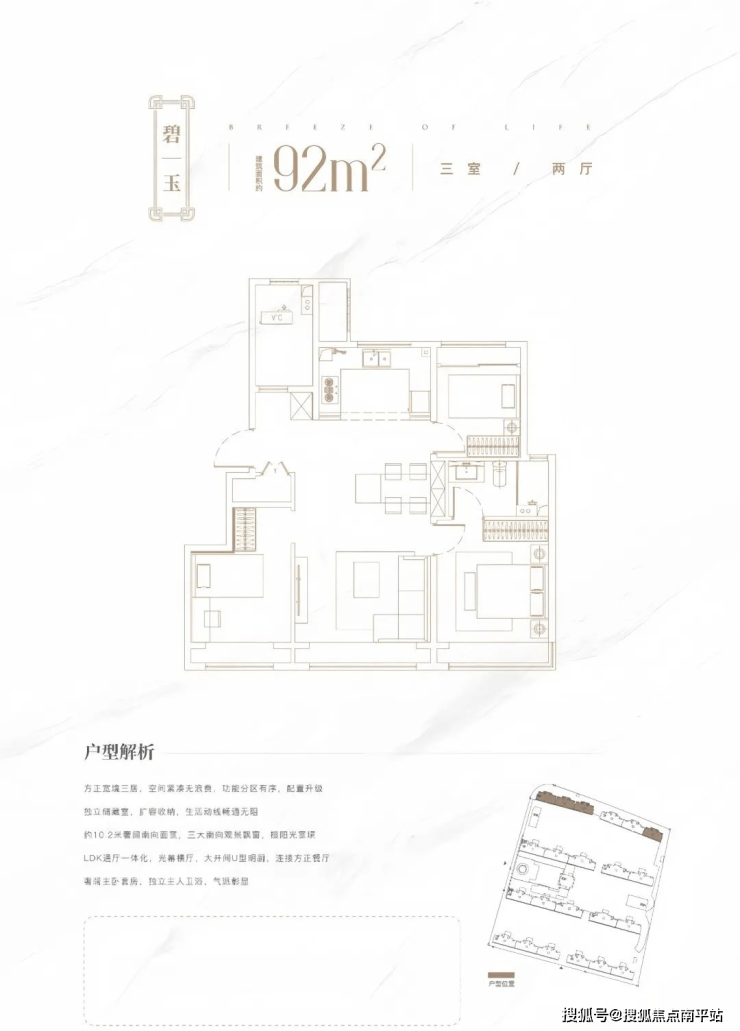 🔥A户型|碧玉92㎡三室两厅两卫: