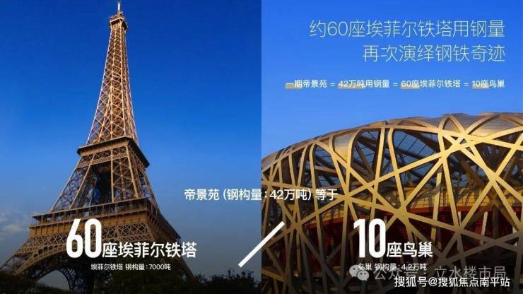 首个在住宅上面使用商业建筑钢结构技术的5栋高达251米62层的超⾼层。以领衔世界水准的钢构造工程,配以军⼯领域或⼤型基建双阻尼器抗震技术,超越普通桩基4倍的桩基深度高达70米,总用钢量高达46万吨,为世界单建筑用钢量之最,演绎钢铁华章。