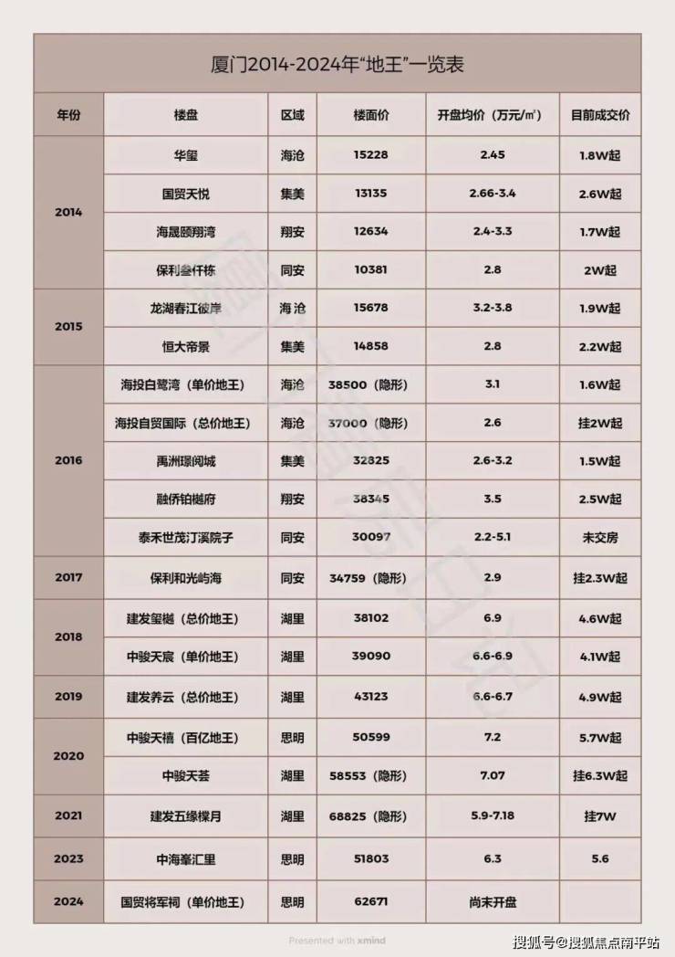 厦门近十年一共出了20个地王!最惨“地王”有六个:海投白鹭湾、海投自贸国际、禹洲璟阅城、泰禾世茂汀溪院子、融侨铂樾府、保利和光屿海。
