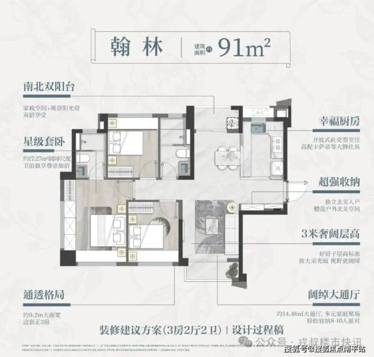 而91㎡边套正三房则做到了既实用又要腔调的。对比市面上一手房,有以下惊喜: