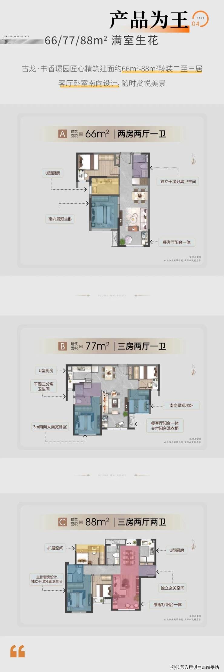 【户型】建面约66㎡两房、77-88㎡三房