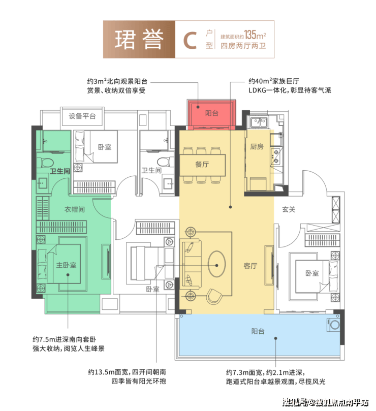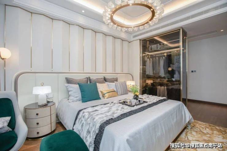 3.15 米奢适层高 + 超 75㎡餐客厨一体化公厅,比普通户型多出 20㎡的生活剧场,宴客、派对皆从容;超 30㎡豪华主卧套房配 270° 转角飘窗,清晨被湖光唤醒,夜晚与星光共眠。