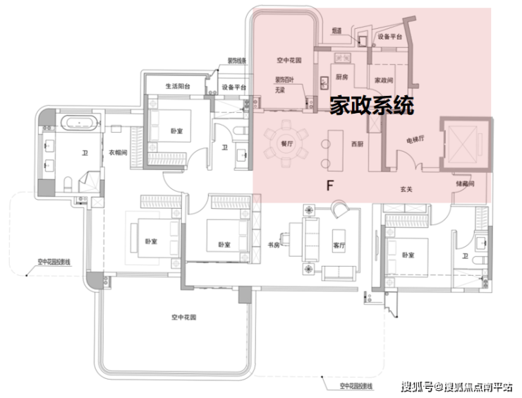 作为岛外新房绝无仅有的205㎡大平层户型,文澜天玥明显在对标岛内千万豪宅居住体验,并且设计了进一步的改善细节。我们得把它分解成三个系统来分析才能看得更透彻。