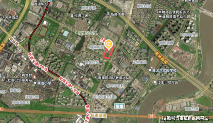 该地块位于海曙区段塘街道,东临环城西路西侧绿地,南接苏家河,西靠现状居住小区,北抵段塘东路,属城镇住宅及配套用地(R1+R2)。
