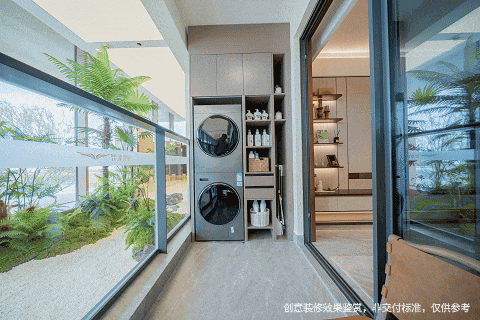 不同于其他产品仅仅只是疯狂放大阳台进深,智都越秀·臻智府采用跑道式阳台+餐客厨一体化设计。