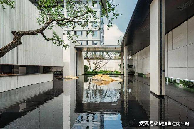 金茂府3.0的品质并不止步于此,大门进入,静谧的水面倒映着水纹砖墙,光影流转,在大宅气韵中,又添了几分波光水影的灵动,奢华大气的示范区就此开启。