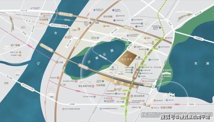 项目地块与中北路、沙湖大道为邻,快速通达全城。更一线直面沙湖全景,揽胜约10km湖岸线上的四季风情。华中金融主轴、武昌政务主轴、中央商业主轴三大主轴鼎立,周边多重商圈环绕,武汉SKP、楚河汉街近在咫尺,一城高阶资源精粹于此。