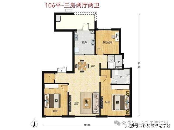 A户型106-107 三房两卫,南北双阳台三开间朝南-分布- 2、11号楼。