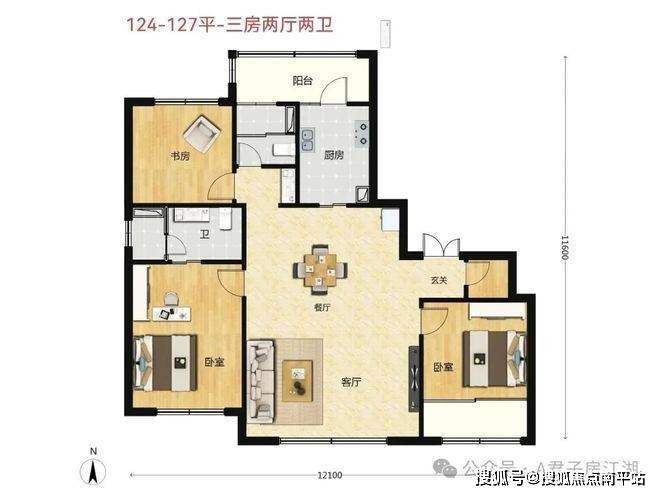 B户型 124-127 三房两卫,南向次卧超大飘窗优化-分布1、6、8、12号楼。 C户型 144-147 四开间朝南,主力改善,短进深采光优-分布4、6、7、8、10、12号楼。