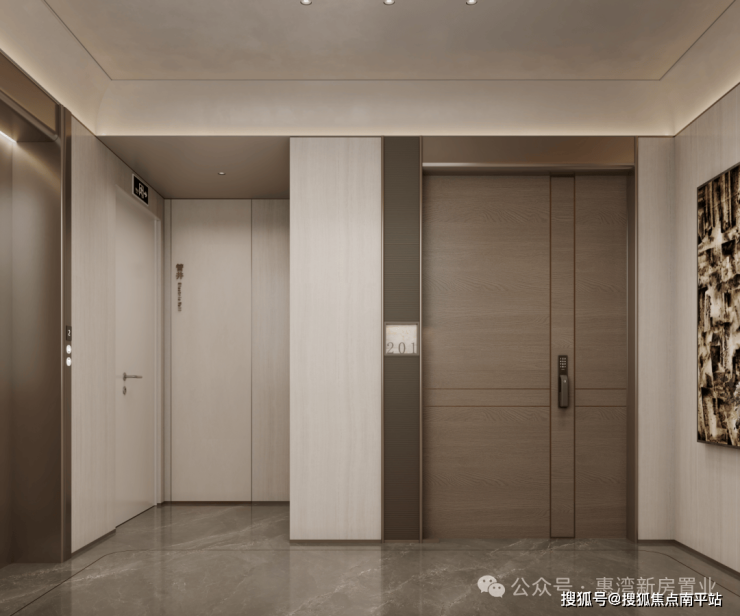 而电梯厅则以高级地砖铺就素雅底色,线条简洁流畅,留白处尽显东方意境,无声传递着 “少即是多” 的雅致格调。
