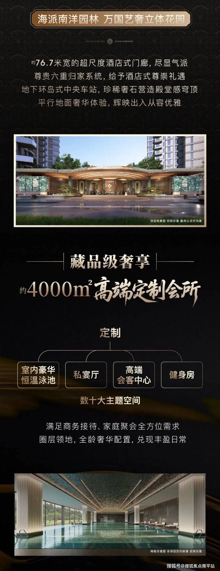 另外,项目整体设计为 海派南洋风 ,规划了 约4000㎡高端定制会所 ,包含恒温泳池、私宴厅、会客中心、健身房等数十个主题空间。