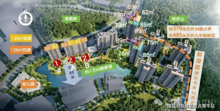 新中式岭南风格,打造特色景观空间;塔楼最高23层,其中1栋为两梯四户,其余为三梯五户,建面约62方两房,约75-88㎡三房设计;板楼最高17层,采用两梯两户设计,建面约125-128四房。