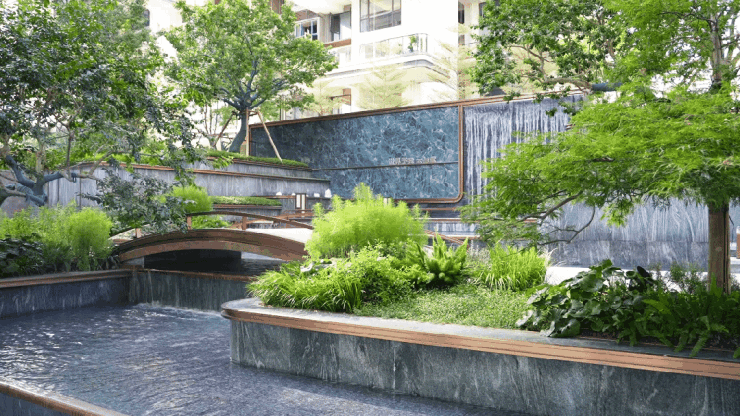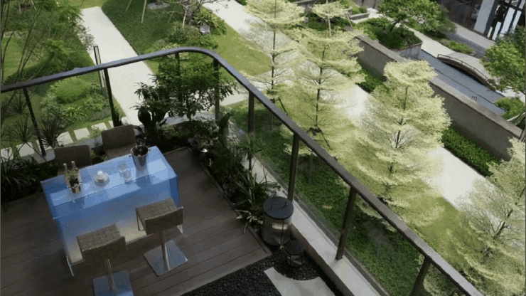 项目汲取Andaz度假酒店灵感,打造近3万㎡森活园林,九重云水空间筑就的“桃源奢隐之境”,搭配空中花园垂直绿化,自然隔热、减少热岛效应,营造绿色健康、生态宜居的生活环境。