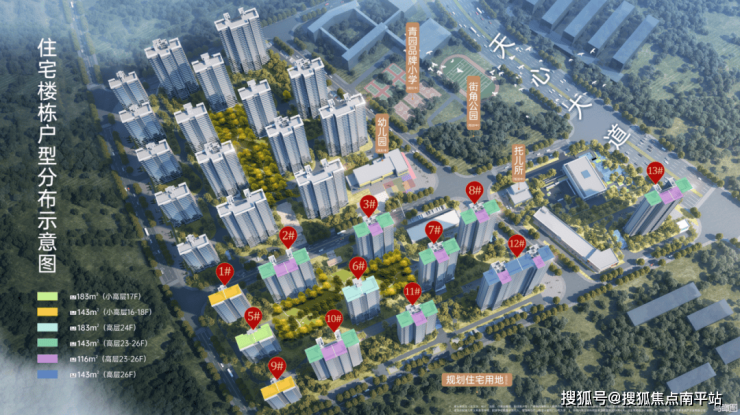 招商蛇口璀璨学府由十万亿央企招商蛇口与天心国资联袂开发,共规划14栋24-27层住宅,主推建面113㎡的三房,建面132㎡和143㎡的四房。