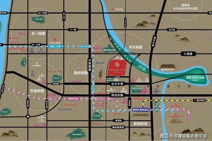 项目位于天心区省府南,距离地铁1号线大托站约900米,2公里内湘雅医院新院区(在建)、13万方环宇城、11万方鑫悦汇、15万方奥特莱斯等醇熟配套。