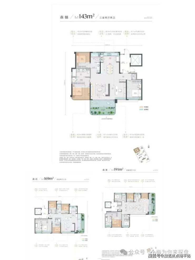 项目一共九栋,24-25层,全部私梯入户。 打造了建面约143㎡、171㎡、191㎡三个户型,可全部实现“负公摊”!因为独立电梯厅加上 赠送的阳台、飘窗、空中花园的面积,实用面积已经远远超过了建筑面积。而且项目很实在地把阳台和飘窗进行了集中优化。建面约191㎡户型使用面积高达约211㎡,得房率约109%!