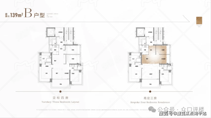 - 户型:建面约139-176-194㎡纯四房/4+1房,2梯2户/2梯3户,层高3.1-3.3米,得房率约101%-102%,实用率拉满。