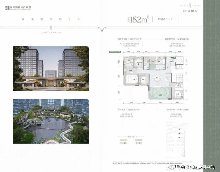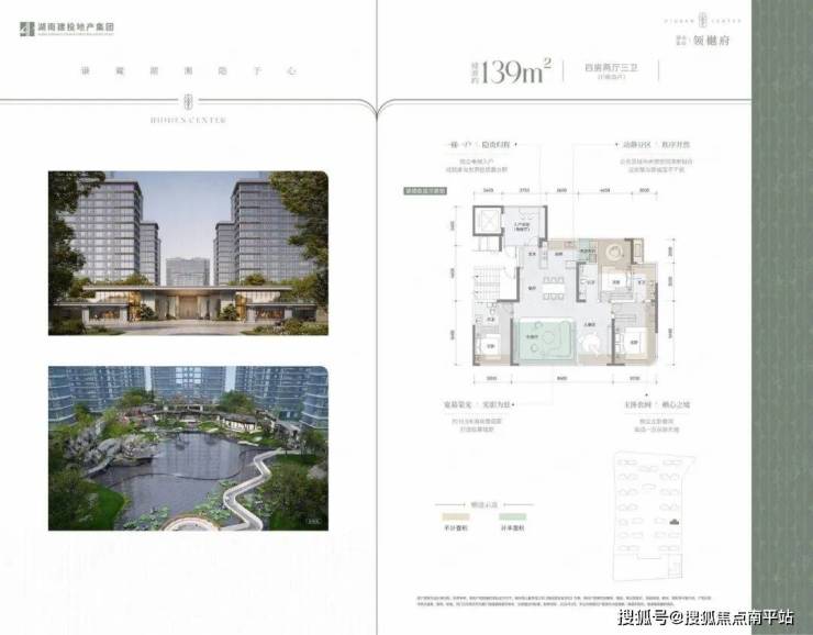 : 四进院落 + 约 8000㎡中央水景 ,风雨连廊、下沉庭院、中庭水景,湖湘书院风拉满。