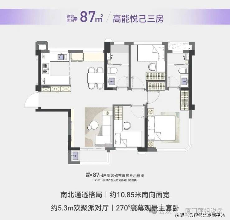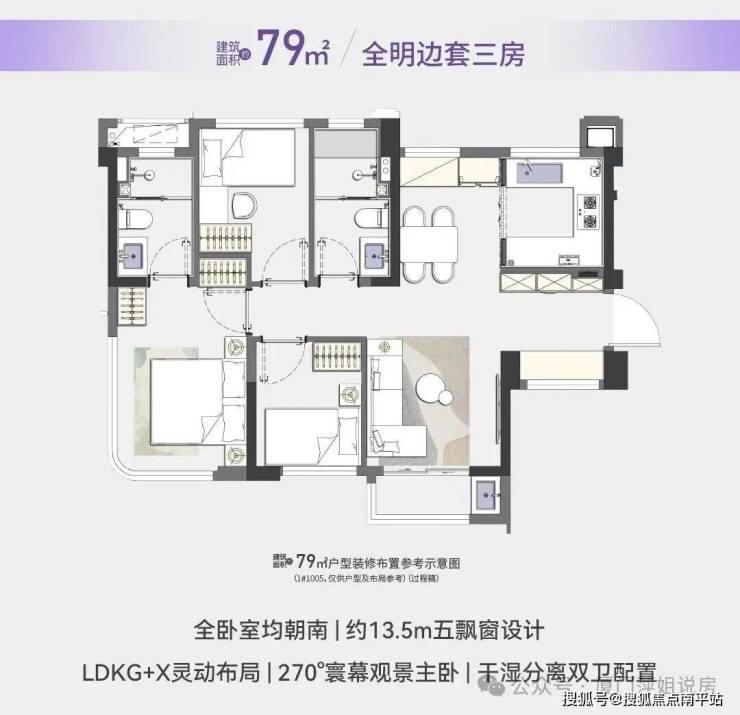 高层79平做出了南北通透边套三房两卫格局,四开间朝南的79平户型相当于岛内联发环岛新澍75平的户型升级,87平更注重居住空间尺度,107平和115平的洋房虽然无法做第四代,但是也把入户花园面积扩充到了15-16平,送到了极致。