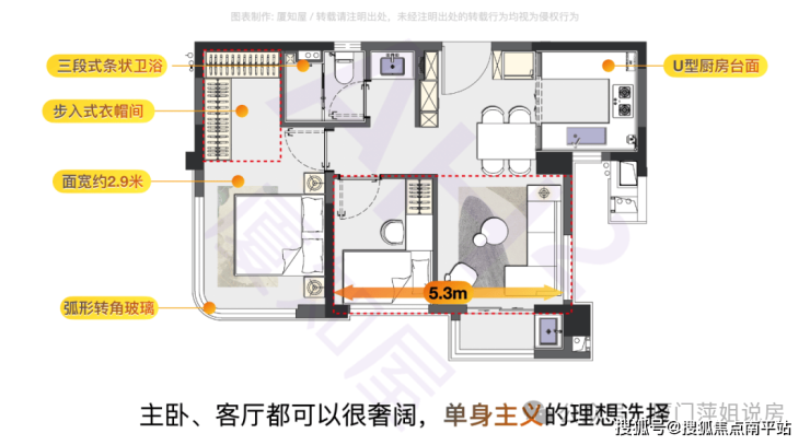 63㎡的户型,它其实是“单身主义”的理想之居,客厅可以做到5.3米面宽的大宽厅,主卧的尺度感也是这个面积前所未有的。这个户型套数很少,估计都不够卖。