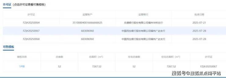 据福州市不动产登记交易平台显示,福州斗池路综合体项目(备注:华润中寰悦府)5#楼和地下室北区、地下室南区于2025年7月28日取得预售。