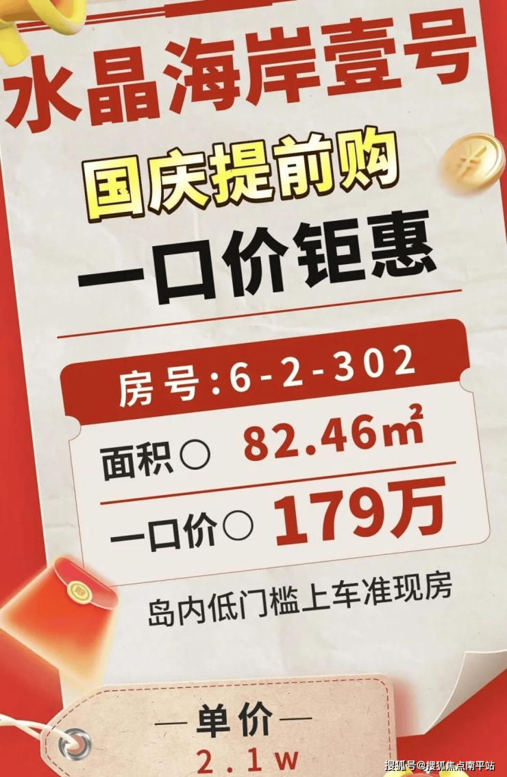 如果你正为国庆置业做准备,如果你想以低门槛入住岛内、享受成熟配套,不妨抓住这次国庆提前购的机会!亲手锁定这套高性价比房源,让“安家岛内”的梦想照进现实。