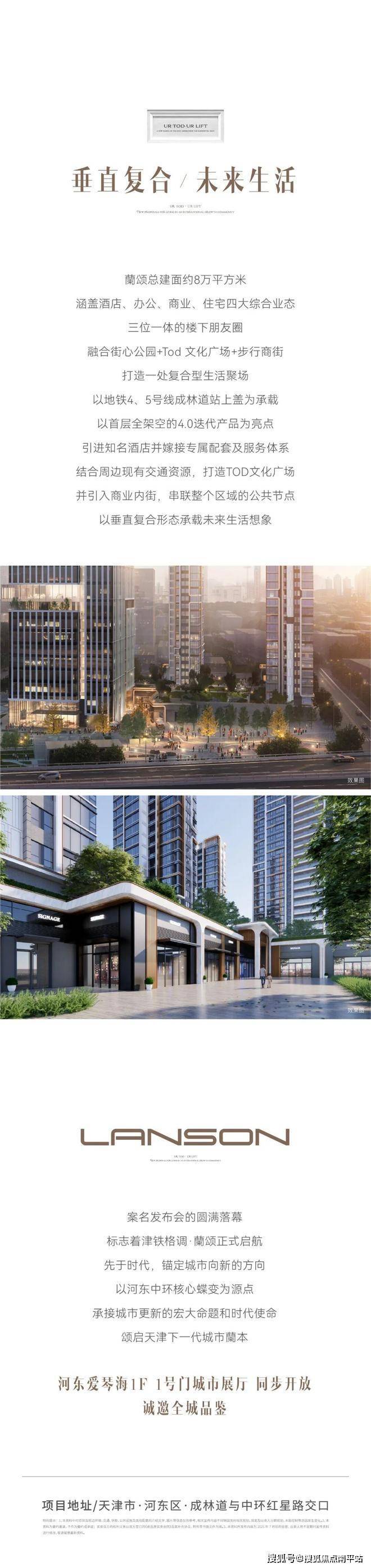 蘭颂总建面约8万平方米涵盖酒店、办公、商业、住宅四大综合业态三位一体的楼下朋友圈融合街心公园+Tod 文化广场+步行商街
