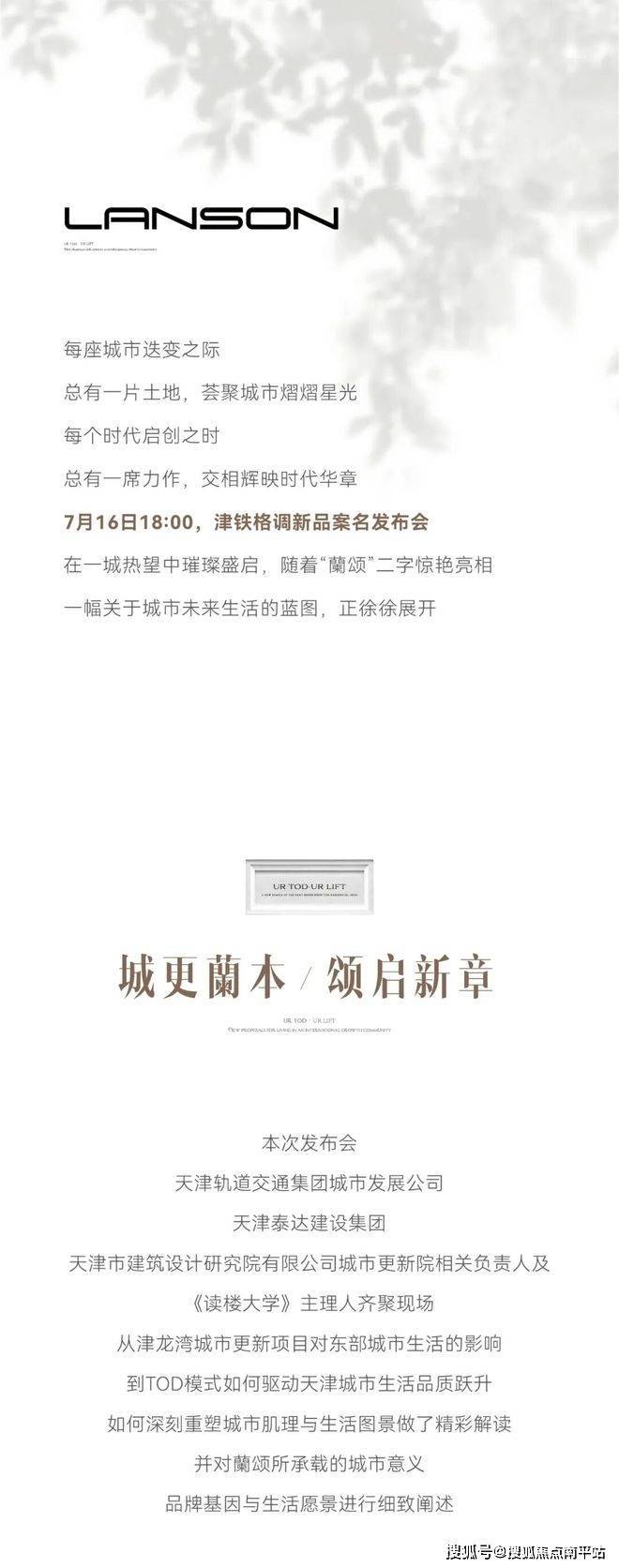 津铁·格调 蘭颂 | 「蘭颂」绽放,启新下一代城市生活蘭本