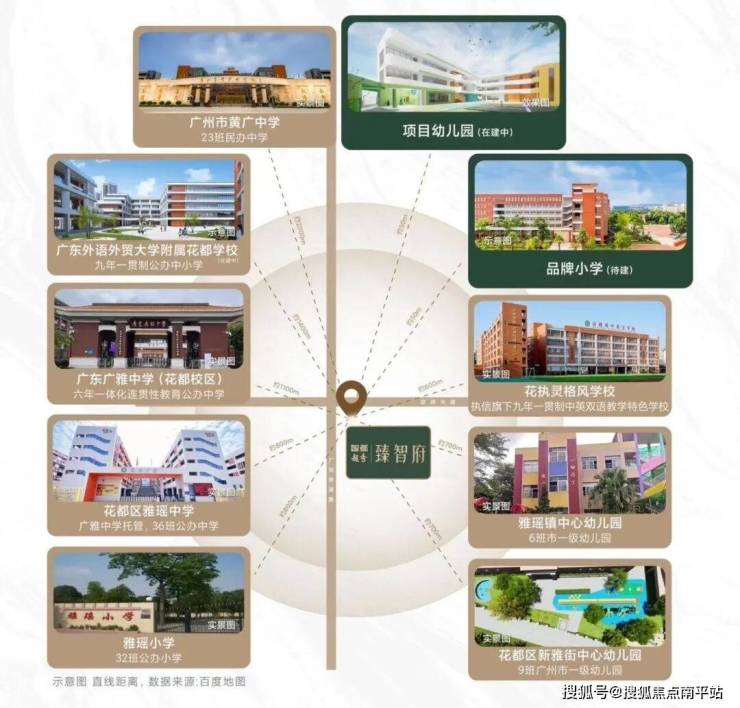 项目南面配建36班公立小学广州市花都区都雅小学南校区(拟纳入广雅教育集团管理),周边1.5公里内覆盖雅瑶小学、广雅中学、黄广中学等全龄段学校,但规划小学需业主收楼后才开学存在时间差。