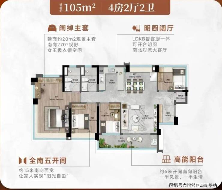 建面约108㎡南北对流四空间,约15米南向五开间,270°景观双面宽大阳台,超20㎡主卧三面采光,更有女王衣帽间+梳妆台空间,智能马桶。