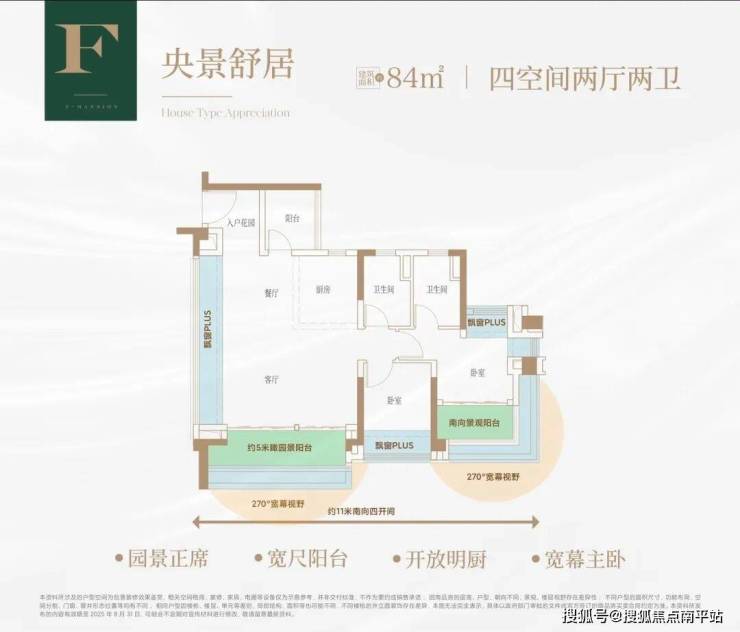 建面约86㎡园景四空间,约11米全南向四开间,约5米长南向270°景观大阳台,南望中央园景泳池。