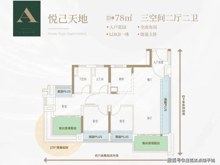 建面约78㎡三房两卫,约11米南向4开间面宽,100%的房间和客厅全朝南,拥有约3.45米客厅开间,主卧270°IMAX视野+独立卫浴+智能马桶小家也能带来星级酒店的居住体验。