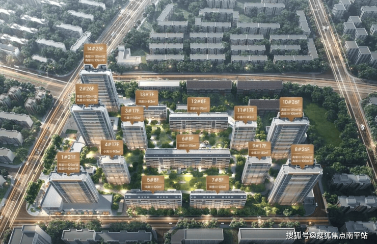 【楼栋规划】高层21-26层,两梯四户;小高层17层,两梯两户;洋房7-8层,一梯两户;