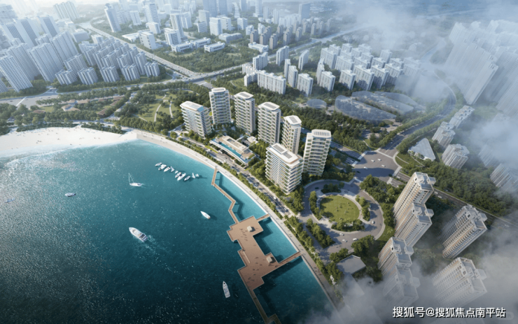 项目7栋楼北高南低,三面围合中庭花园,中庭向整个五缘湾敞开,海上栈道碧波澜影视觉上也成为中庭的延伸。湾海,在厦门第一次被无界交融于社区中,深度强化了“一线私藏海岸”的获得感。由于地块占据岸线长达280米,距海仅30米,精确的楼栋排布和架空层加高设计,确保户户都有自己的独特观景视野,最大环幕视野达到270°。