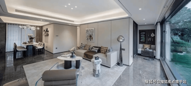 1.出入归家礼待:东入口社区大堂面积约120㎡,层高约5.5米(装修后约4.7米),墙面为瓷砖通铺,地面为石材微缝拼接,右侧通过大面岩板+天然云石壁灯渲染酒店式归家氛围;楼栋入户大堂采取电动对开门设计,层高约3.6米(装修后约3.1米),悬浮吊顶,墙面及地面通铺“简一(900*1800)”瓷砖,充分运用光影变化、艺术点缀、高贵建材等手法强化了精致的空间美学,匠著更契合业主的学府生活方式