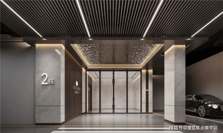 2.地库入户空间:光鲜的建筑立面是面子,而地库入户则是里子。璀璨学府地下车库落客区以铝板格栅搭配仿石材瓷砖打造星空归家路径,地下入户大堂及电梯间以石膏板吊顶+仿石瓷砖渲染温馨感。使业主在归家路上的每一分钟,时刻感受品质归家氛围