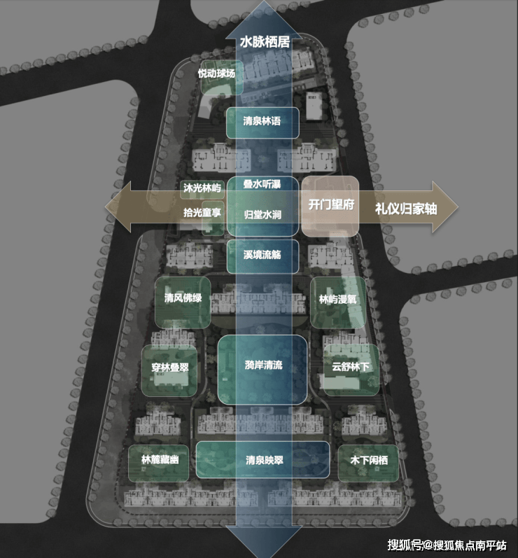 二期的建筑排布,便是采取「北高南低、前隐后尊」的规划手法。