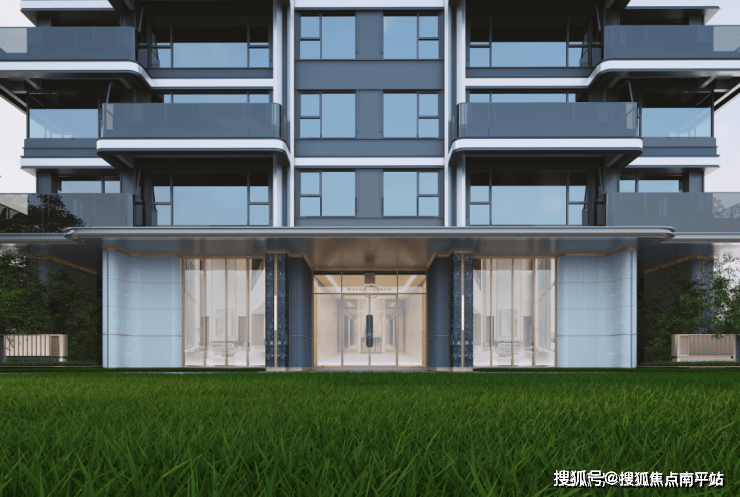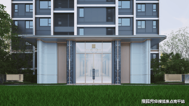 中交海河玺二期的建筑立面,在一期「国际化极简风」基础上,升级为「时空折叠」主题。