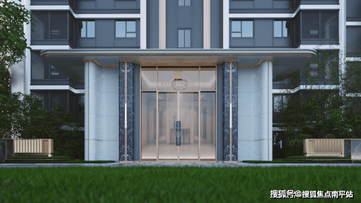 首层入户大堂,通透玻璃、厚重石材与精致金属巧妙搭配。两侧的奢石立柱纹理独特,简约中尽显高雅。
