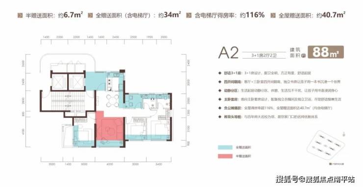 项目搞出了一个建面约88㎡的户型,得房率达到了惊人的约116%,相当于买以前老规125平左右的房子。