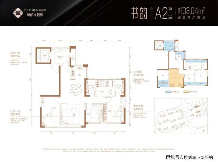 润和天心序可能参照了润和学区的成功经验,搞出了建面约100㎡起的小户型,四房两厅两卫。主打一个控制总价,功能齐全。