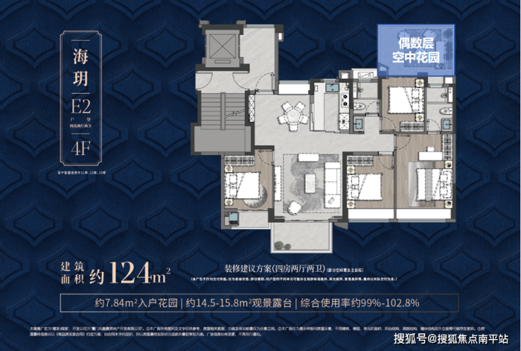 ▷ 洋房124㎡「露台+入户花园」双配置,拓展率达23%,打造第二生活场景