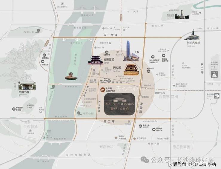 三千年主城根基,一个天心区,半部长沙史。项目落址天心中芯,长沙核心二环内孤品地段,城市贵脉之地,城芯丰盛资源云集。