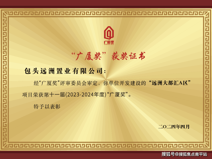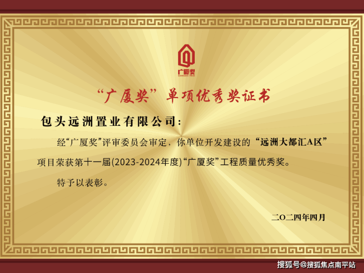 远洲大都汇是包头市场上罕有的双料大奖获得者:国家级房地产广厦奖,代表中国房地产开发综合水平的最高荣誉,是对项目规划、设计、建筑、环境、服务、文化等全方位卓越品质的权威认证。这项沉甸甸的奖杯,是远洲集团超越市场标准、兑现品质承诺的最佳背书,为业主筑就经得起时间考验的理想居所。