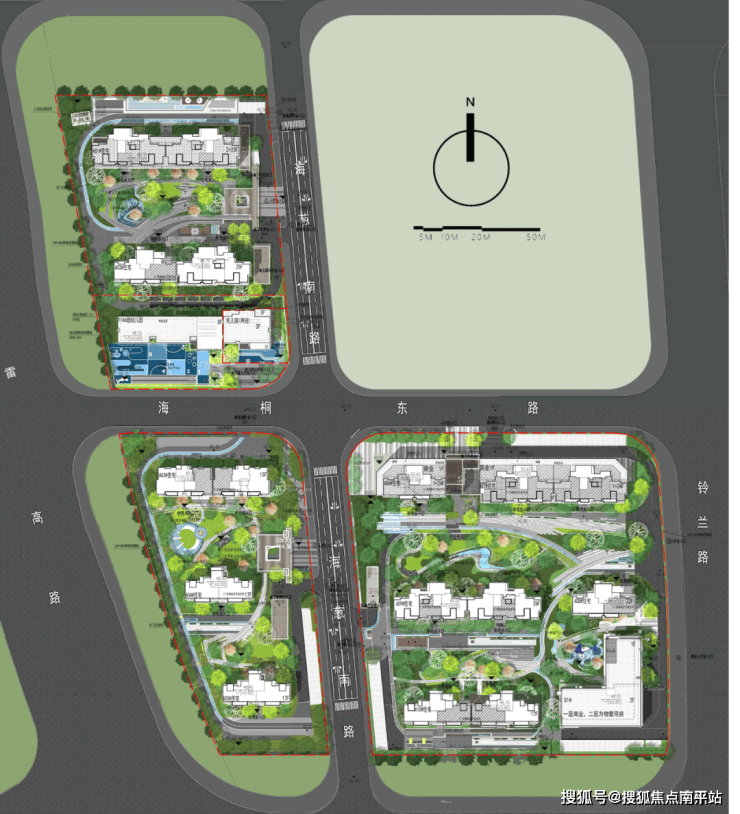 项目内部两条时尚艺术商业街区、四个有气质的华府门楼、三条有诗意的林间运动环、三处有温度的全龄健身花园、三处有故事的儿童乐园、贯穿整个场地的无界公园式理想住区。